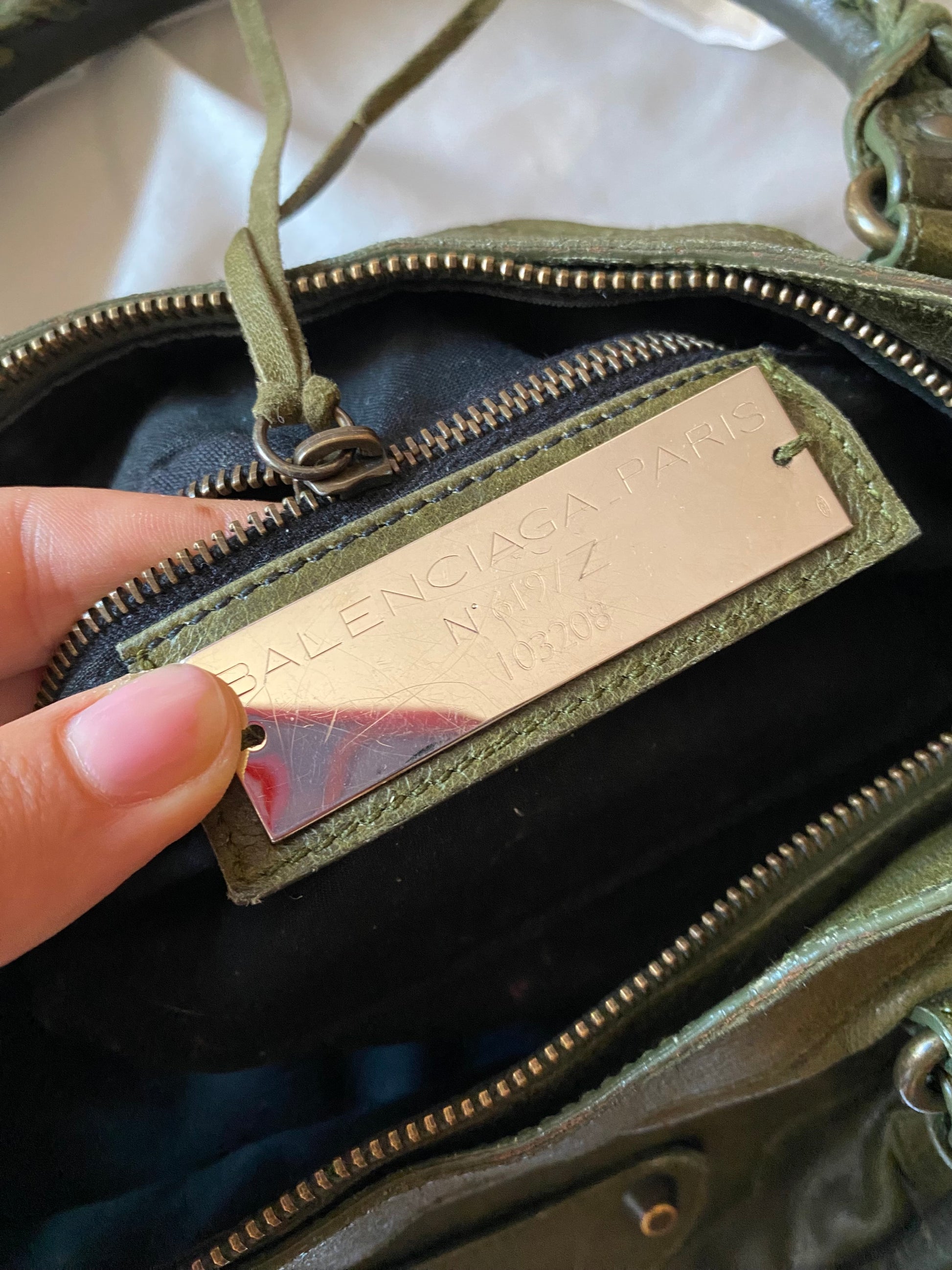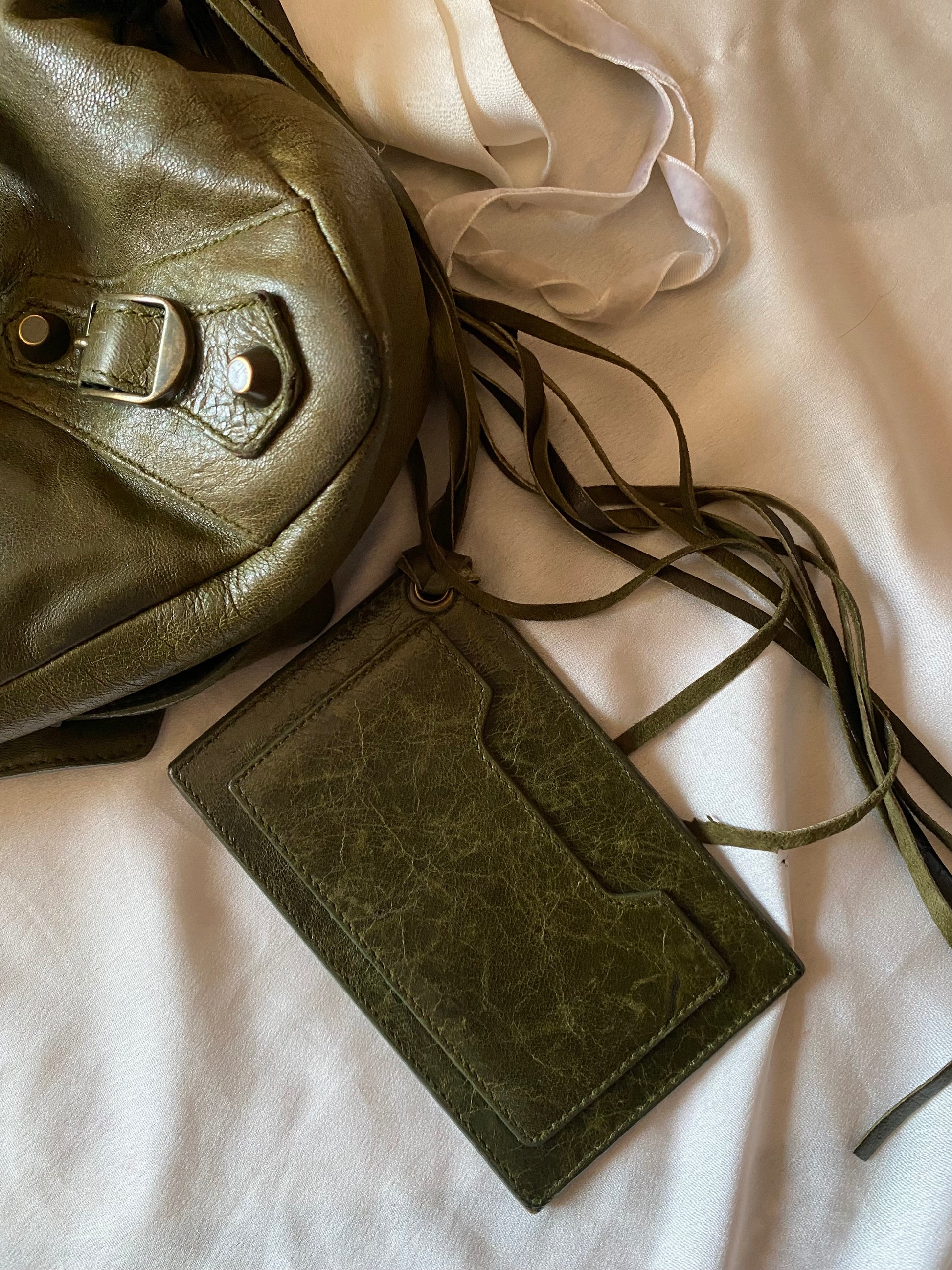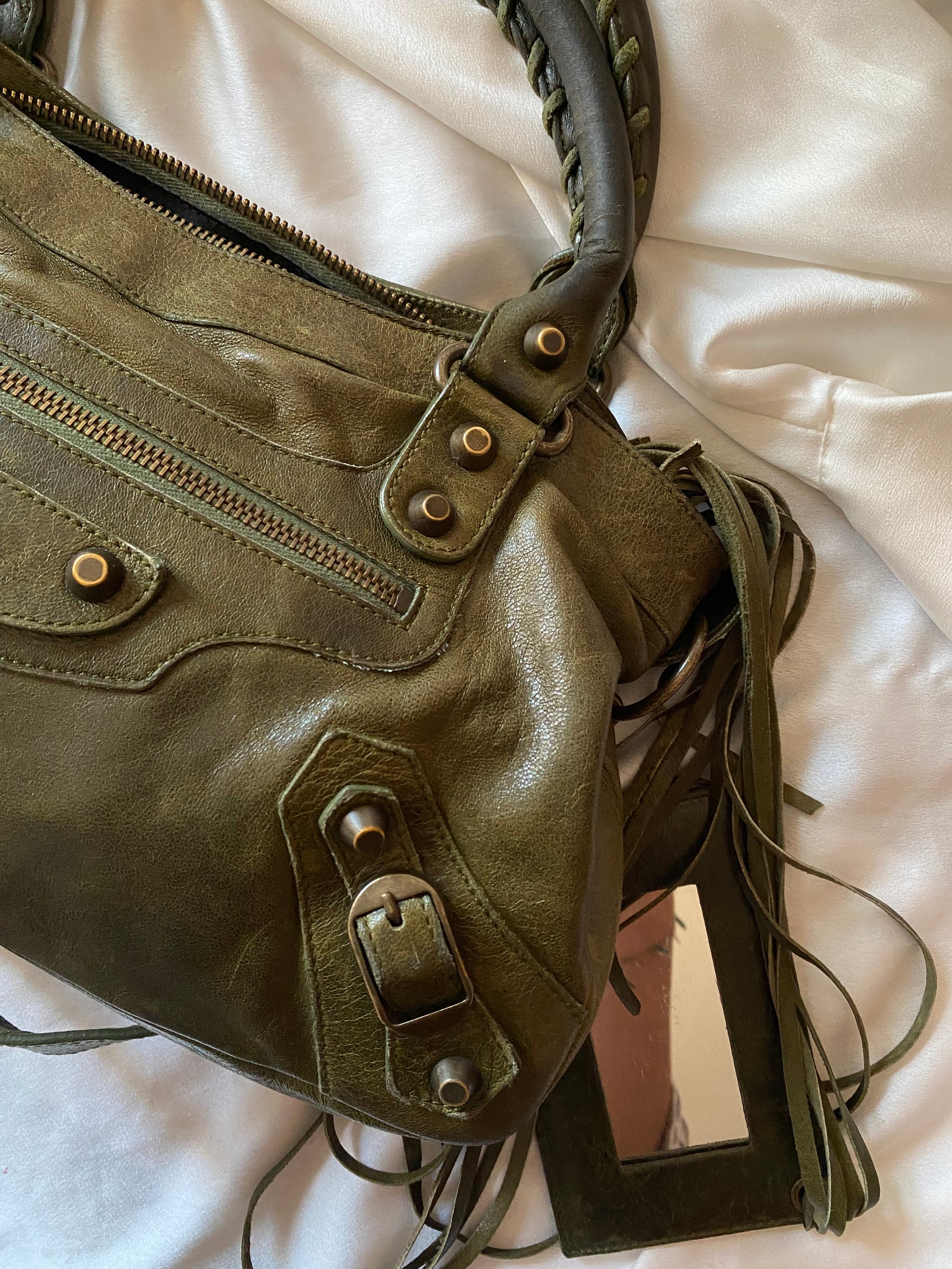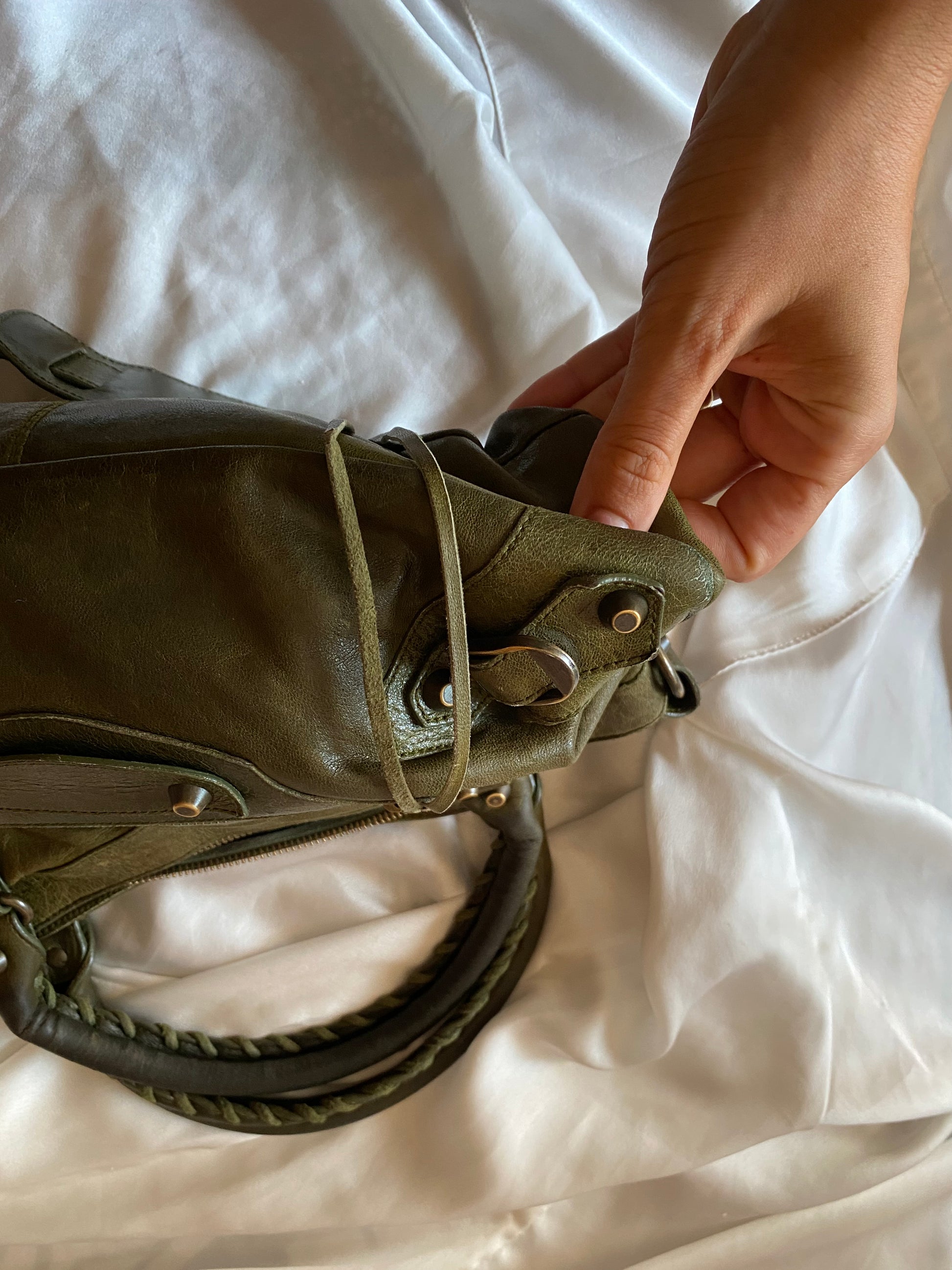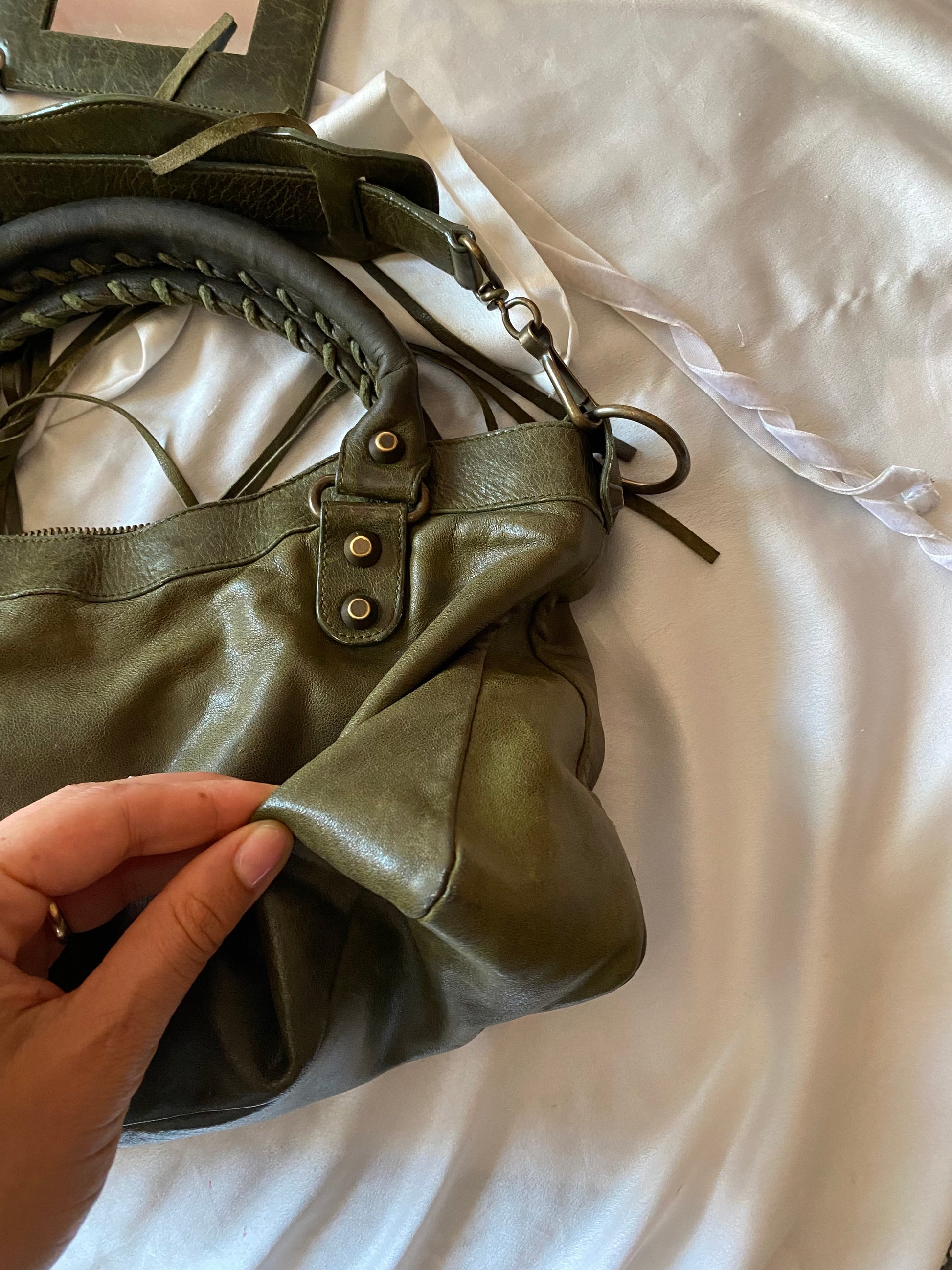 Wonderful Balenciaga First olive color from FW 2005 in chevre leather and genuine 925 silver tag 🥹 Truly wonderful color. Very soft leather. Minimal marks on the corners and slightly darker handles.