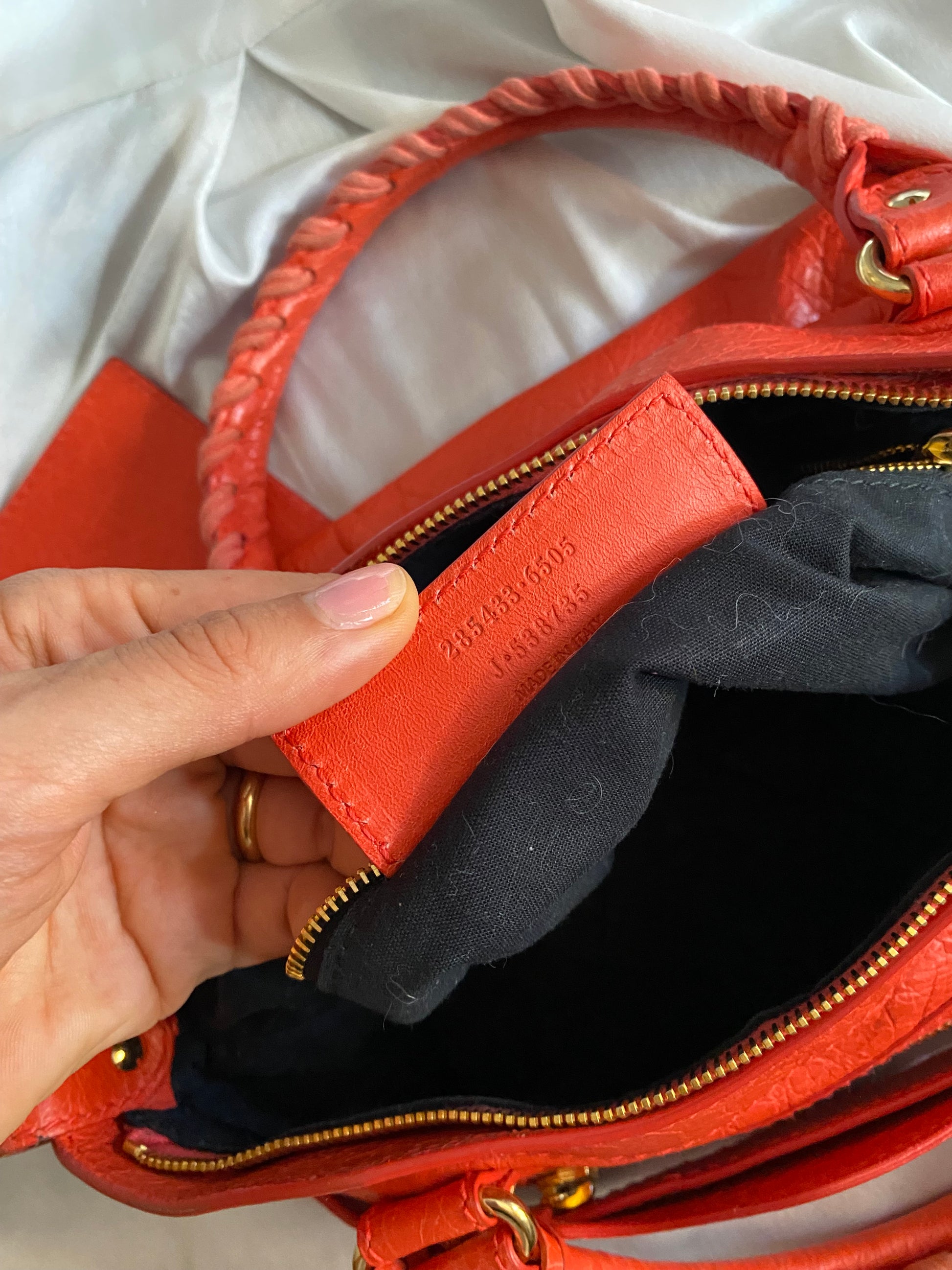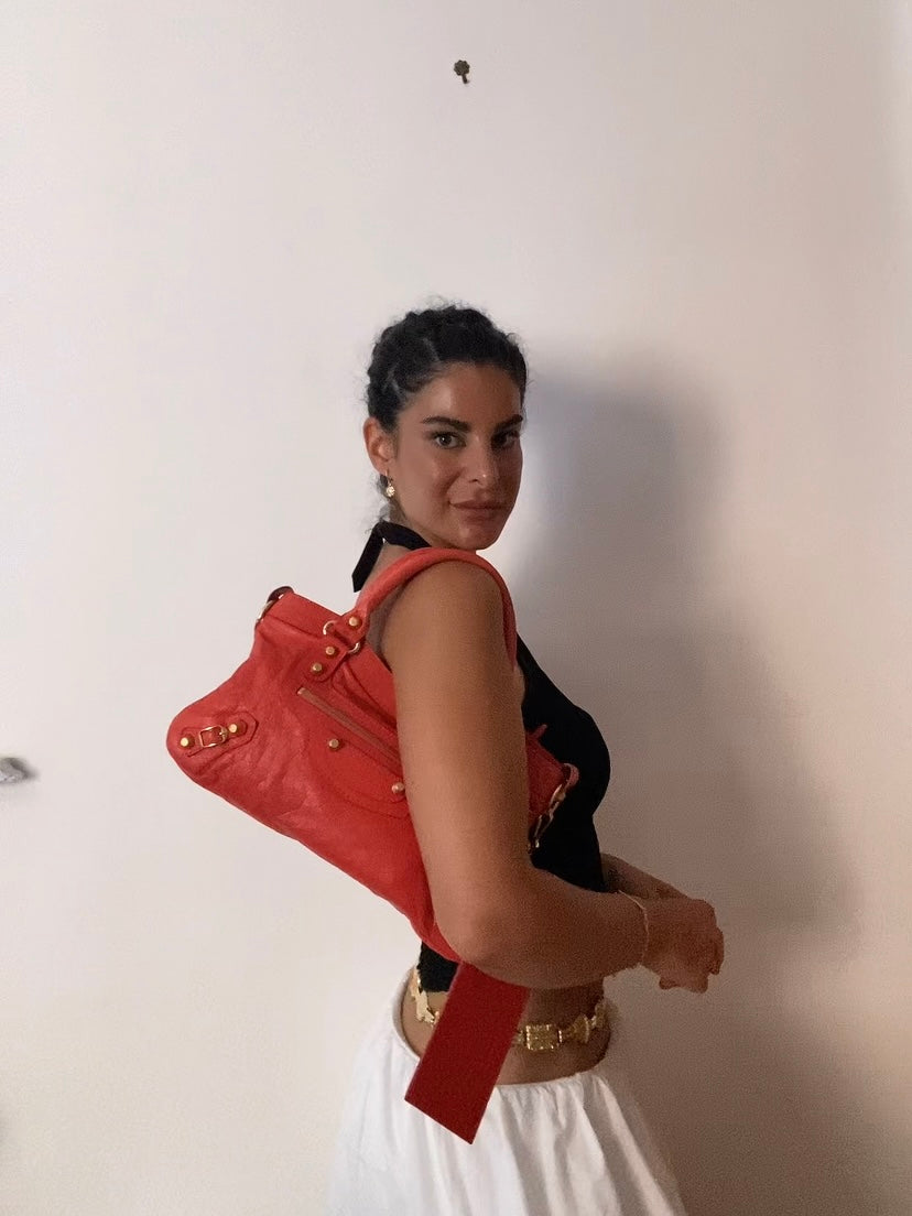 Wonderful Balenciaga First color rose corail from SS 2013 in lambskin and giant hw 🥹 crazy color! Used with some marks on the corners and on the handle.