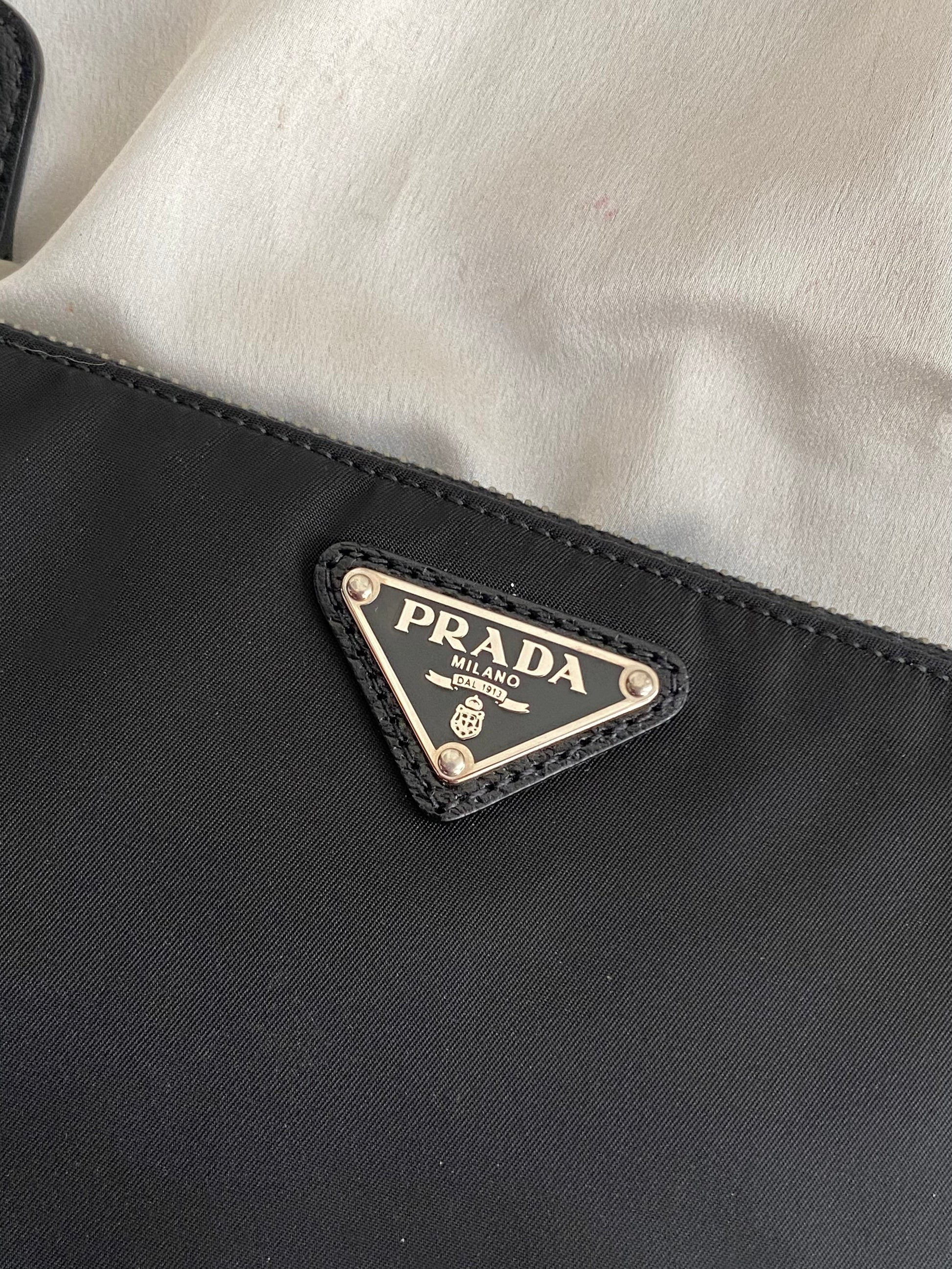 Rare Prada edition in nylon with leather trim. Richly detailed leather shoulder strap. Lightly used with minimal signs of wear, very good overall condition.