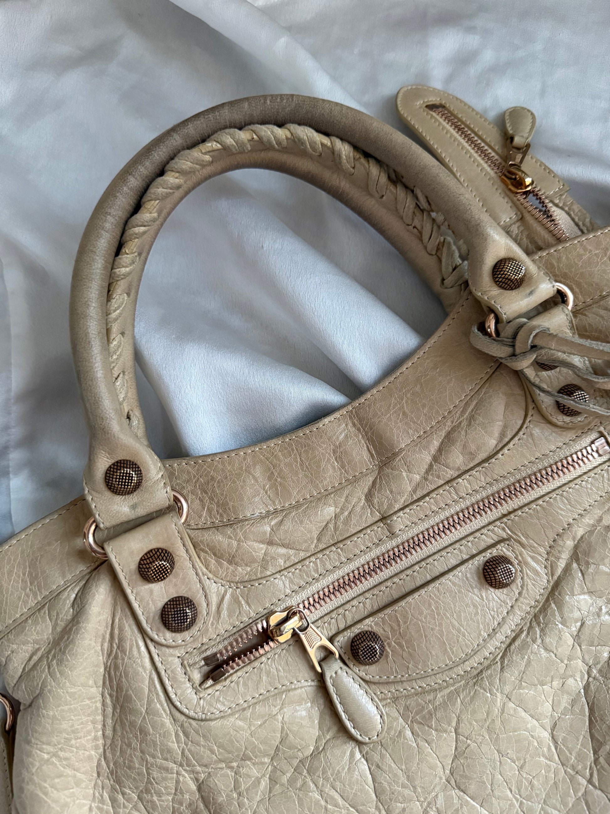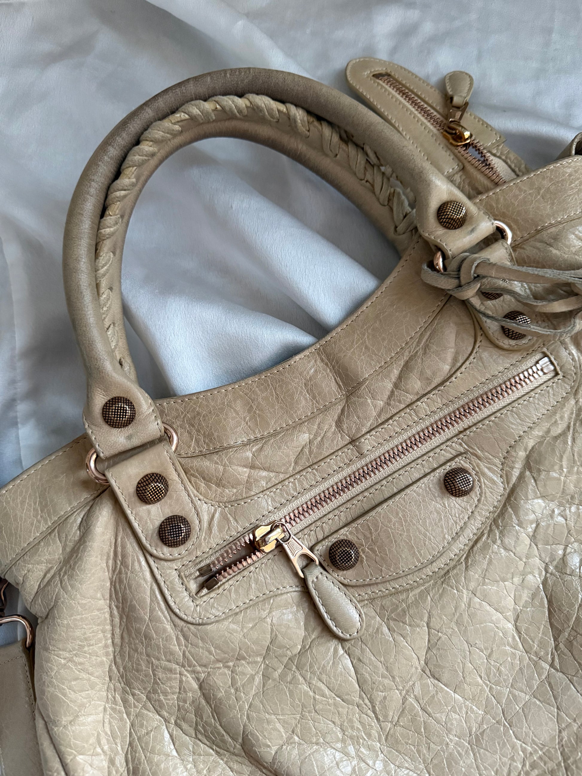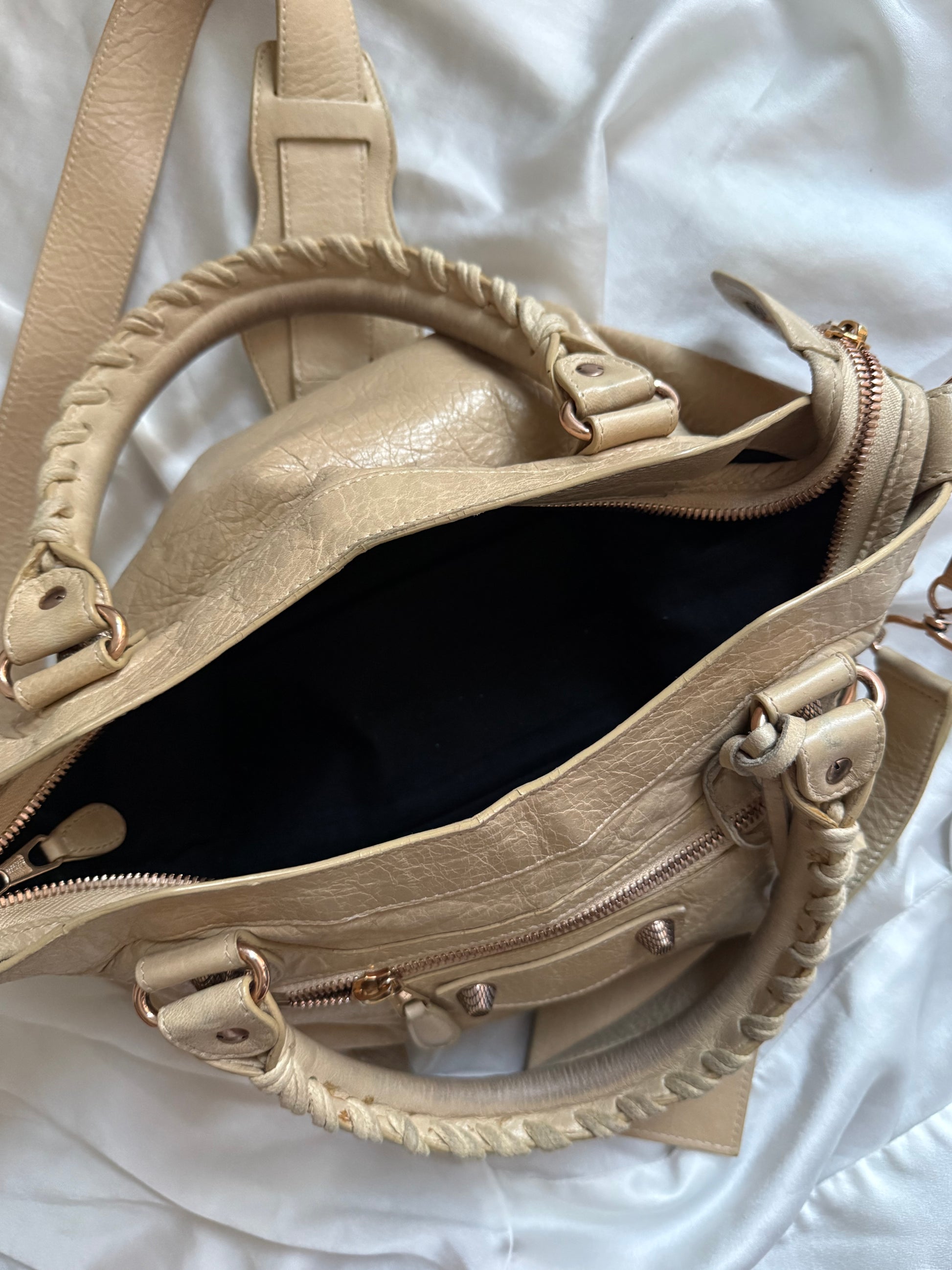 Balenciaga town nera in giant hardware rose gold. Minimi segni sugli angolini e manici leggermente più scuri, usata pochissimo e completa di dustbag e cartellino. Buonissime condizioni generali!